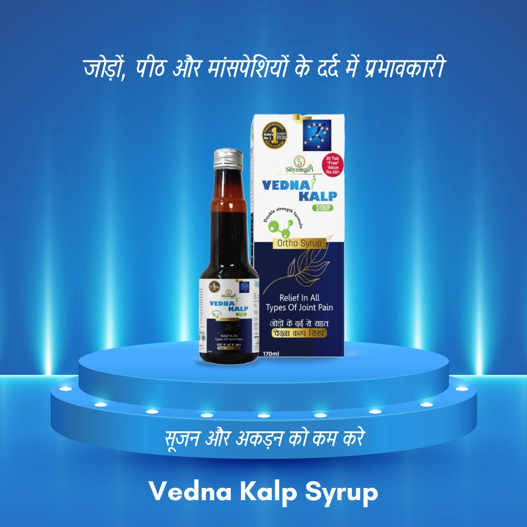 Vedna Kalp Syrup is a powerful Ayurvedic formulation made from pure natural herbs that helps relieve joint pain, back pain, muscle stiffness, and inflammation. It supports smooth mobility, reduces fatigue, and provides soothing comfort for people of all ages.